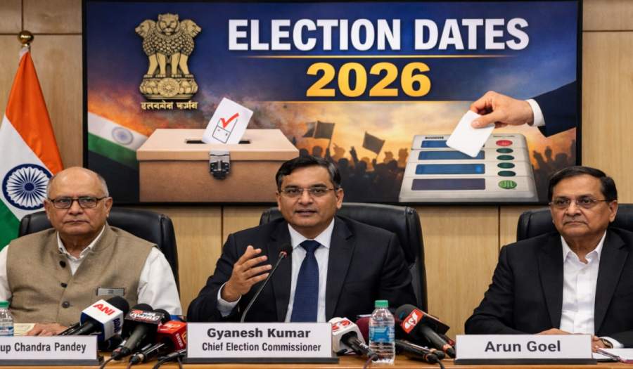 Election Commission of India (ECI) has officially announced the Election Dates 2026 for assembly elections in five regions — West Bengal, Tamil Nadu, Kerala, Assam, and Puducherry. The announcement was made during a press conference led by Chief Election Commissioner Gyanesh Kumar on March 15.